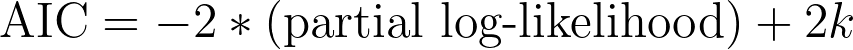 AIC的解释很大程度上依赖于似然(更具体地说,对数似然或在Cox回归的情况下,模型的偏对数似然)的概念。一般来说,似然的概念是模型告诉您这些数据在假设所选模型为“真实”模型的情况下生成的可能性有多大。有了这个概念,就应该明白“好”模型会产生较高的似然值,而“差”模型的似然值较低。
