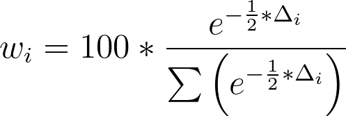 其中,AICi是单个模型的AIC,而min(AIC)是所比较模型中所有可能AIC值中的最小值。请注意,对于AIC值最小的模型,AICi将与min(AIC)相同,因此该模型的Δi为零。一旦我们有了每个模型的Δ值,就可以使用以下公式计算每个模型“正确”的“概率”: