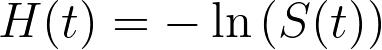 - 累积风险,H(t):这是模型在给定观察的失效时间(到时间t的总累积风险)时估计的个体累积风险。累积风险的较高值对应于估计累积生存概率的较低值。这个值对于许多数学/计算原因很重要(并且也包含在结果表中),但不容易直接解释。累积风险和累积生存之间的关系可以用以下公式表示: