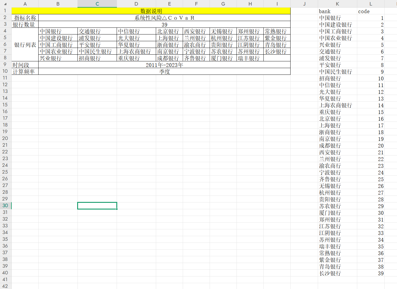 【数据】39商业银行系统性风险covar季度数据 2011年-2023年