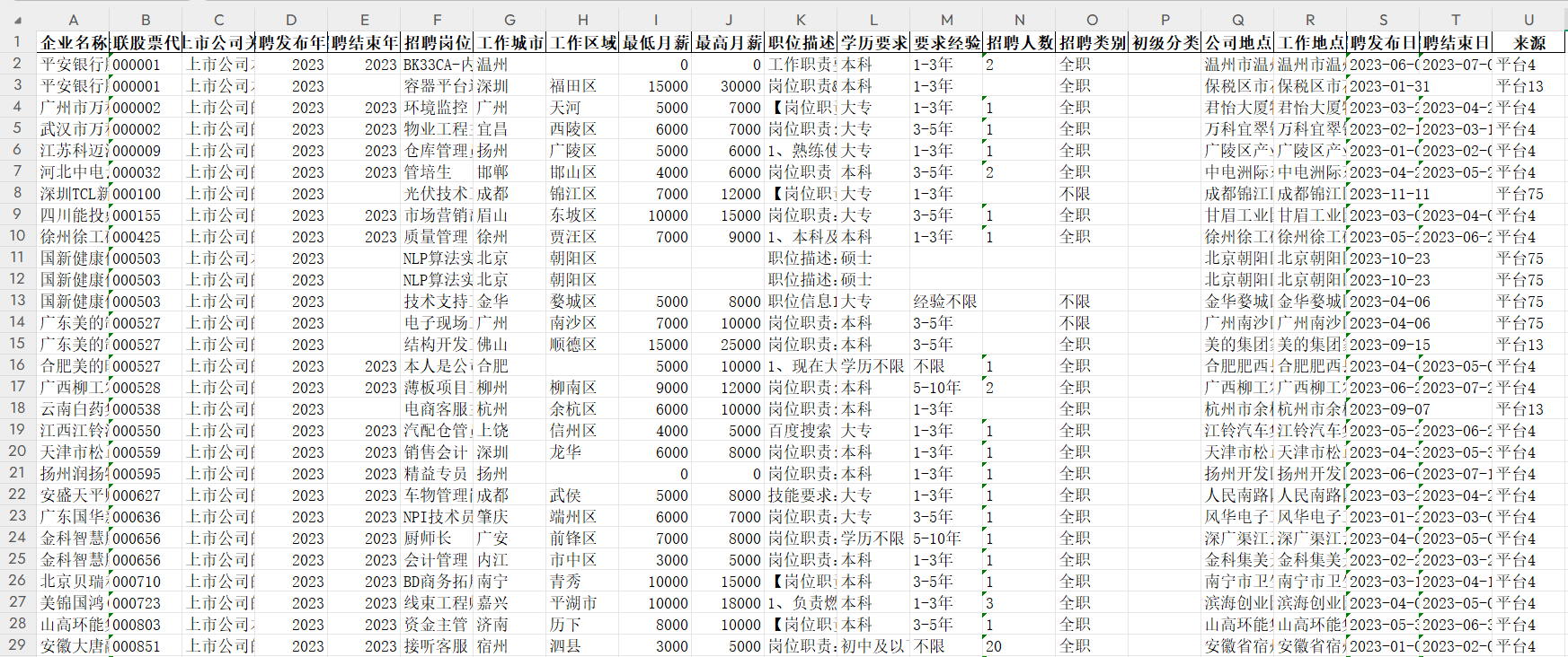 一、数据介绍数据名称:上市公司招聘大数据