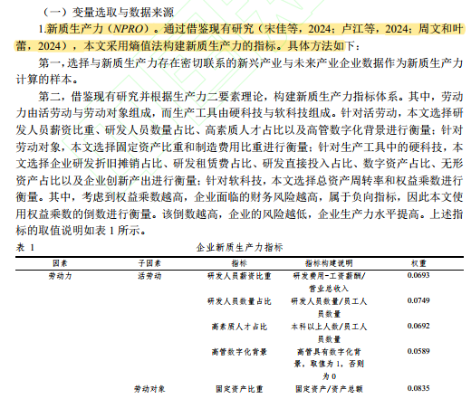 控制变量:企业规模、企业年龄、行业类型、地区等可能影响新质生产力的因素。