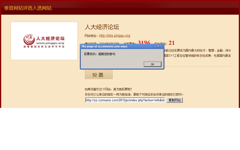 前天投票时排名27,今天再投票已上升21了,恭喜啊,集体的力量是无穷的