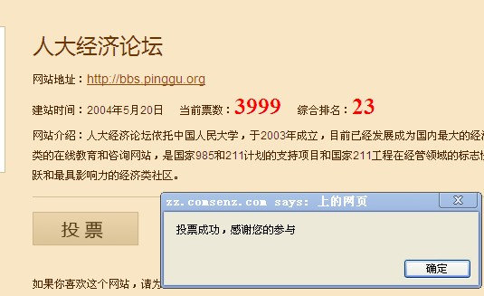 今年投了,名次上到23名了。到今天已经投了4票了,还用另一个IP投了一票
