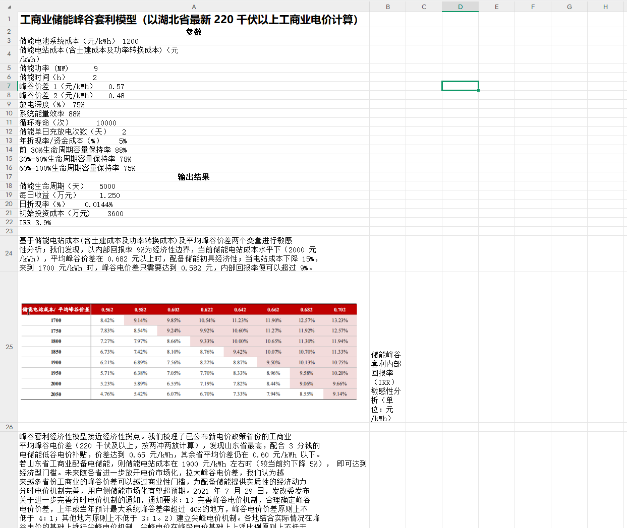 【Excel计算表】工商业储能峰谷套利模型.xlsx