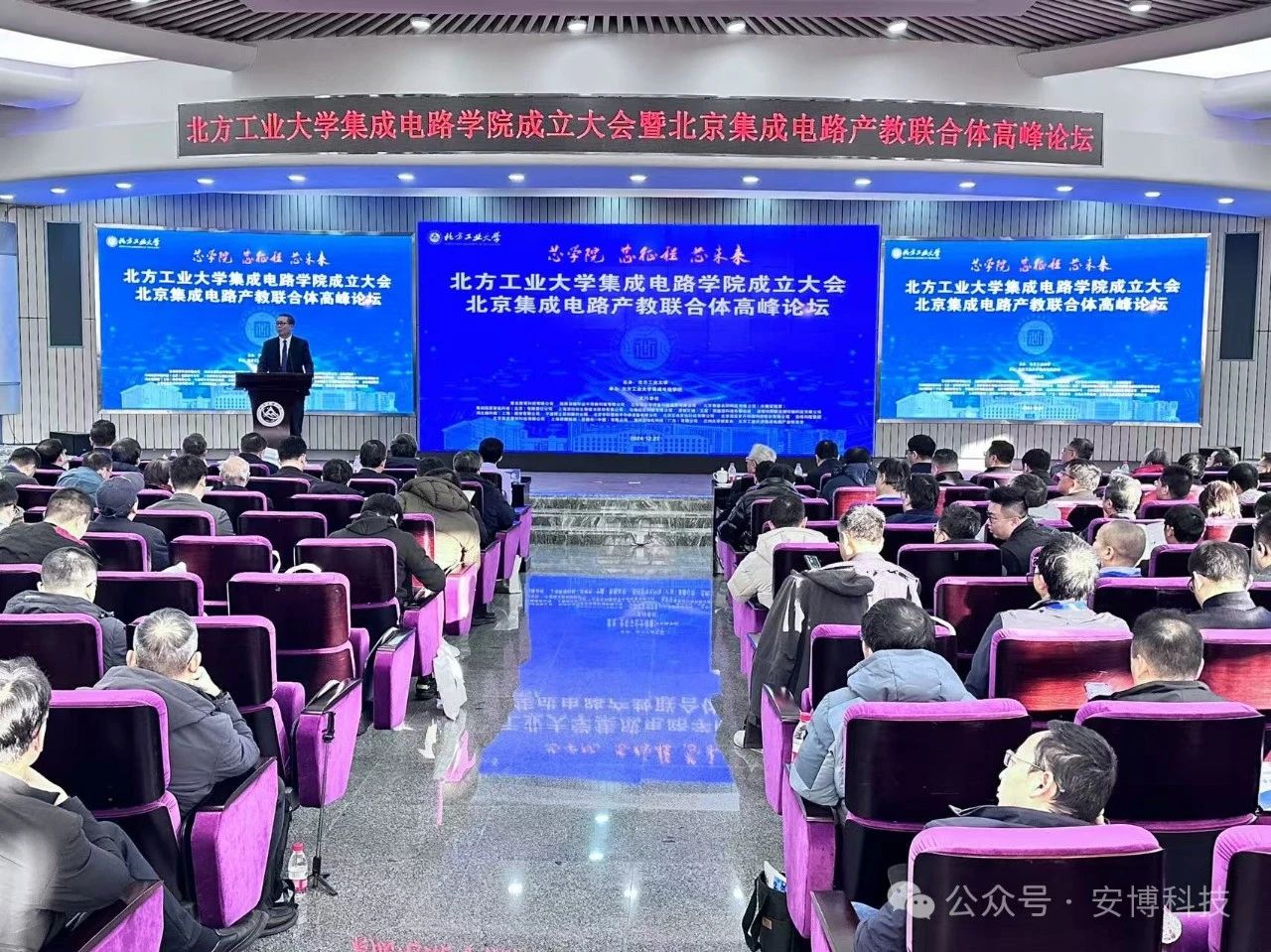 近日,北方工业大学集成电路学院成立大会暨北京集成电路产教联合体高峰论坛在北京隆重举行。会上,安博科技与北方工业大学联合推出的集成电路产教融合AI大模型“芯学博问”正式亮相。安博科技集团首席科学家兼安博研究院院长黄钢博士与北方工业大学集成电路学院院长闫江教授一起发布“芯学博问”大模型。