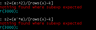 这里有个问题,为什么我用s2=(e:^2)/[rows(x)-k] 或者是 : s2=(e'*e)/[rows(x)-k] 就要报错