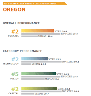 The following are excerpts and highlights from Oregon's Clean Energy Economy: A Clean Edge State Clean Energy Leadership Index Report. To read the full report, please open the PDF file by clicking on the “Download” links.
