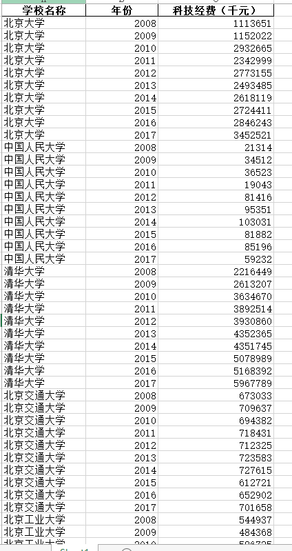 2008-2017年全国近700所高校科技经费面案数据.xlsx