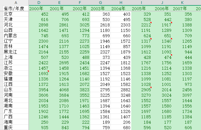 本数据集是在前人对1998-2017年数据进行手工核对的基础上,本人再次通过各省检察院年度工作报告进行手工核查更新了2018-2020年数据。并进行初步处理得到1998-2020年31个省级数据构成的面板(前人提供的所谓面板数据其实并非面板)。需要说明的是,由于2018-2020年各省检察院一半以上年度工作报告公布的职务犯罪和渎职犯罪立案数据与1998-2017年悬殊太大,根本不是一个量级,不得已只得对其采用近5年移动平均计算得到2018-2020年数据,同时附上注释标明了当年工作报告公布的相关数据。另外,当下暂时难以获得2018-2020年国家层面编制的《中国检察年鉴》,如有同学具备查阅全国统计年鉴的条件,建议再次更新。在此,同时对前人的工作表示由衷的感谢!
