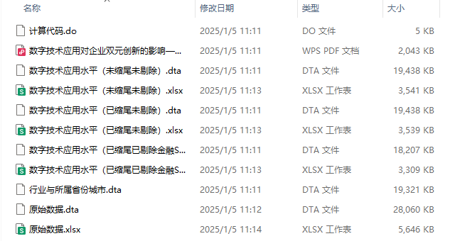 - 文件格式:Dta格式(使用Stata打开)、Xlsx格式(使用Excel打开)