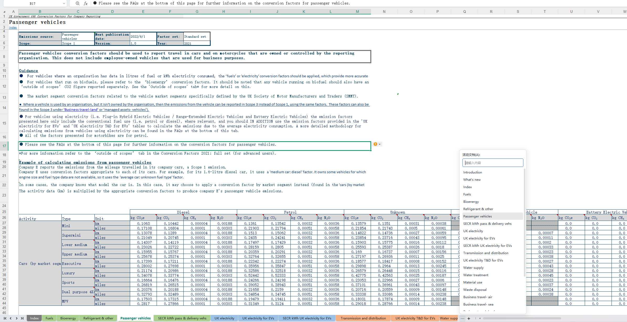 【数据】英国环境部 排放因子数据库EFDB-常用版 2021