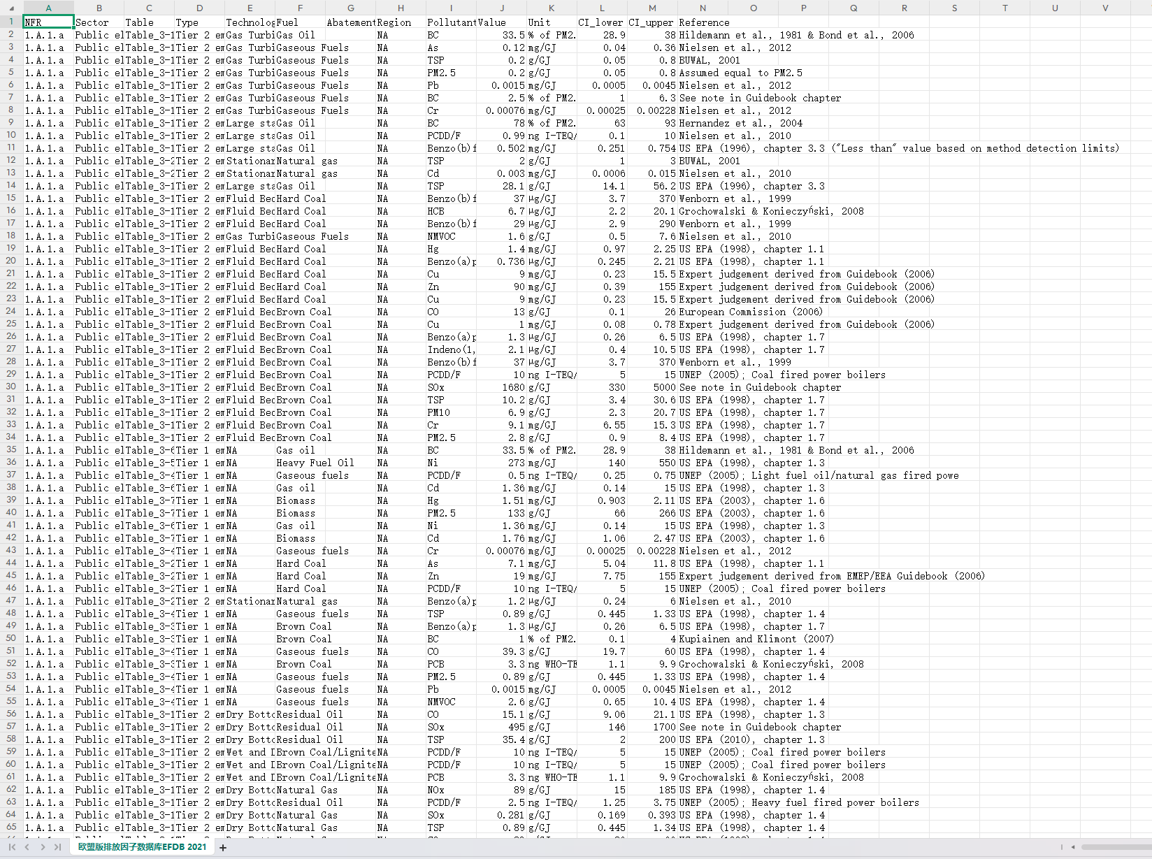 【数据】欧盟版排放因子数据库EFDB 2021【数据】欧盟版排放因子数据库EFDB 2021