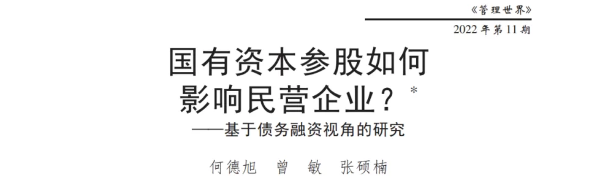 何德旭、曾敏、张硕楠,2022:《国有资本参股如何影响民营企业?——基于债务融资视角的研究》,《管理世界》第11期