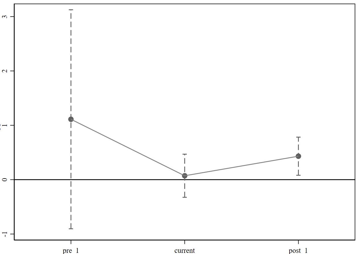 求大佬解答,平行趋势检验做出来长这样还能怎么调整?控制变量以及换基期都试过了
