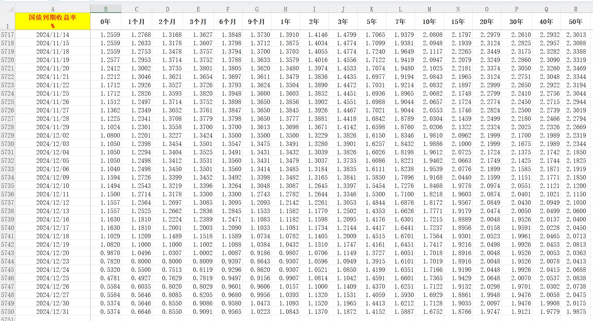 2002年1月1日-2024年12月31日 各期限 不同期限 国债收益率 国债到期收益率 无风险利率