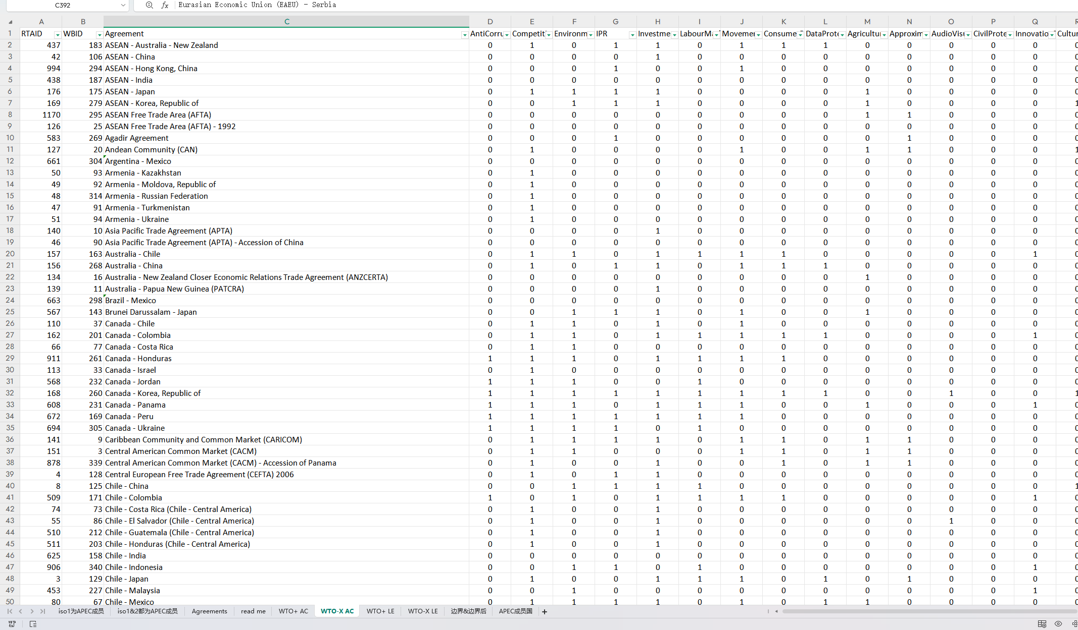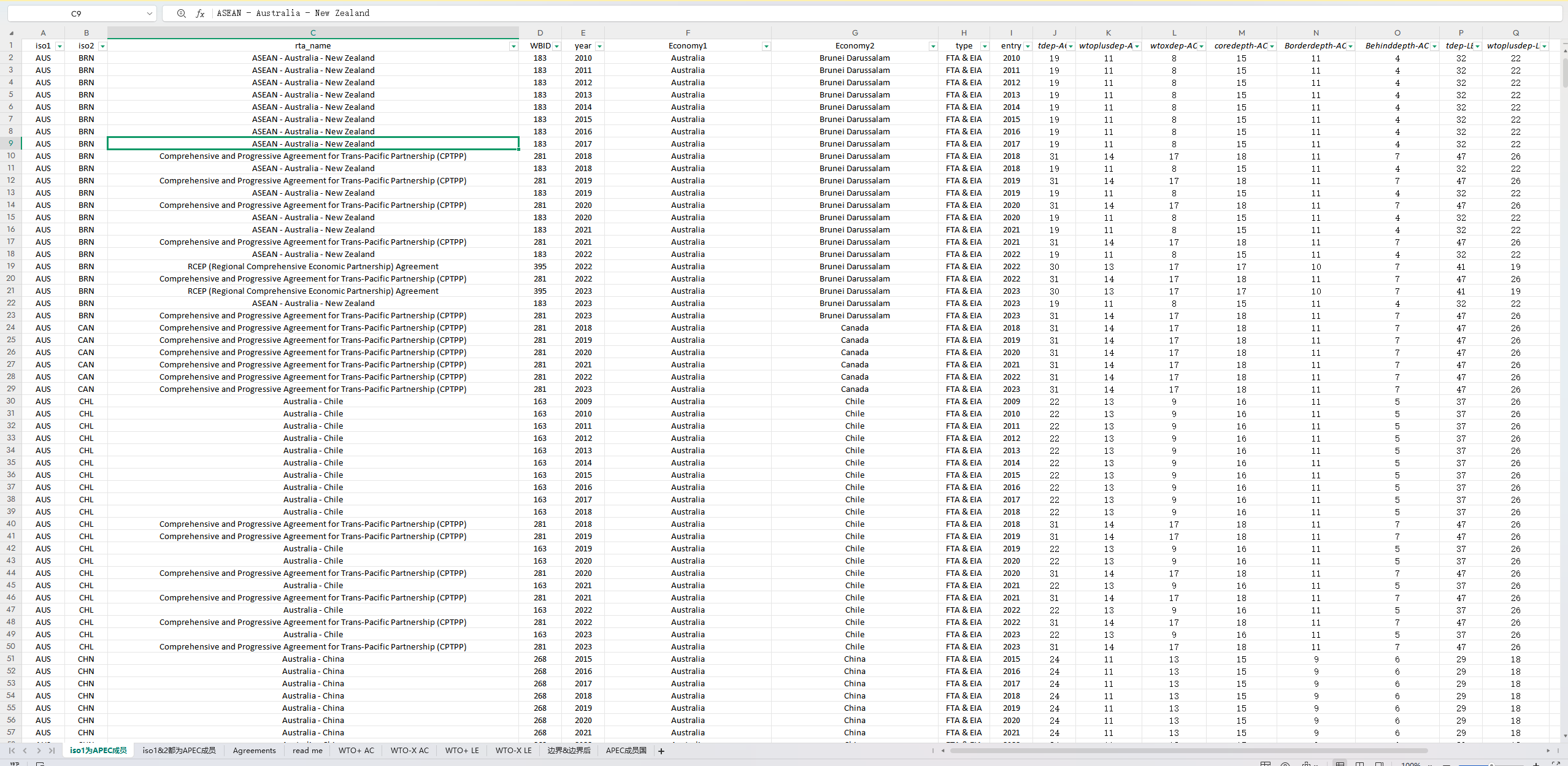- 亚太经合组织(APEC) 21国区域贸易协定深度数据 拆分成国家对形式