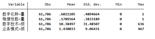3.生成数字化转型虚拟变量,具体为年报中涉及到数字技术应用或■业务模式转型相关关键词的样本设为1,否则为0。