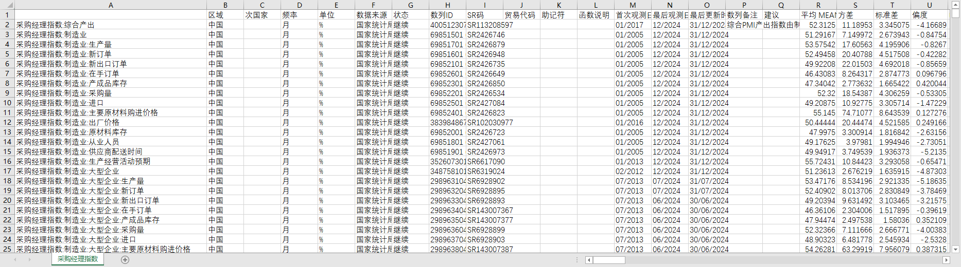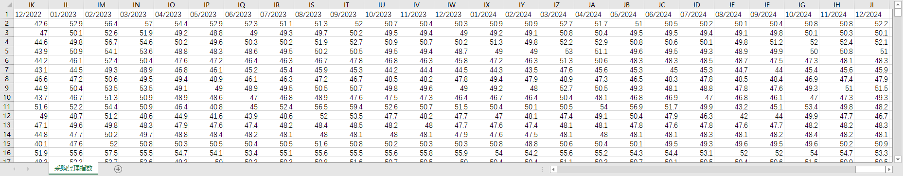 全国各行业采购经理指数月度数据200501-202412生产量新出口订单产成品库存从业人员等等