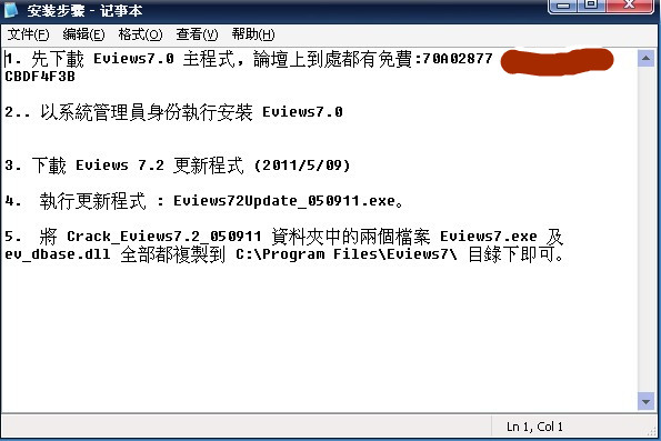 新帖(11月)-Eviews7.2 最佳破解 (2012/11/08),Win XP, Win7及 Win8 都適用