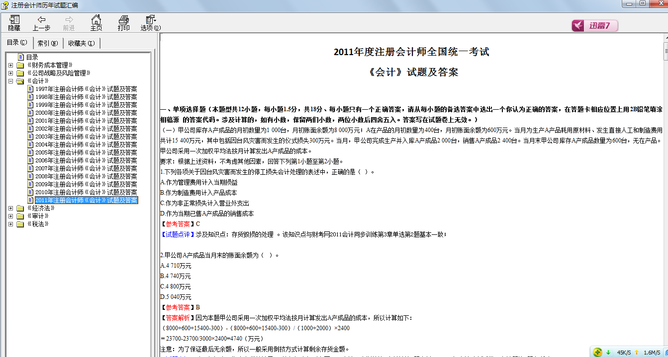 注册会计师历年试题汇编《六门全》【1997-2011】历年试题+重点标注+答案详解