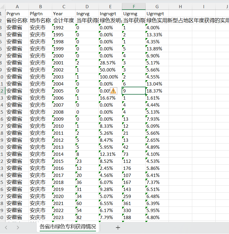 ②数据年份:不同表格不一致,很多表格比如上市公司绿色专利申请与获得都是从1991年开始的,目前除了引用里的被引用信息更新到23年11月底,其余均更新到23年底