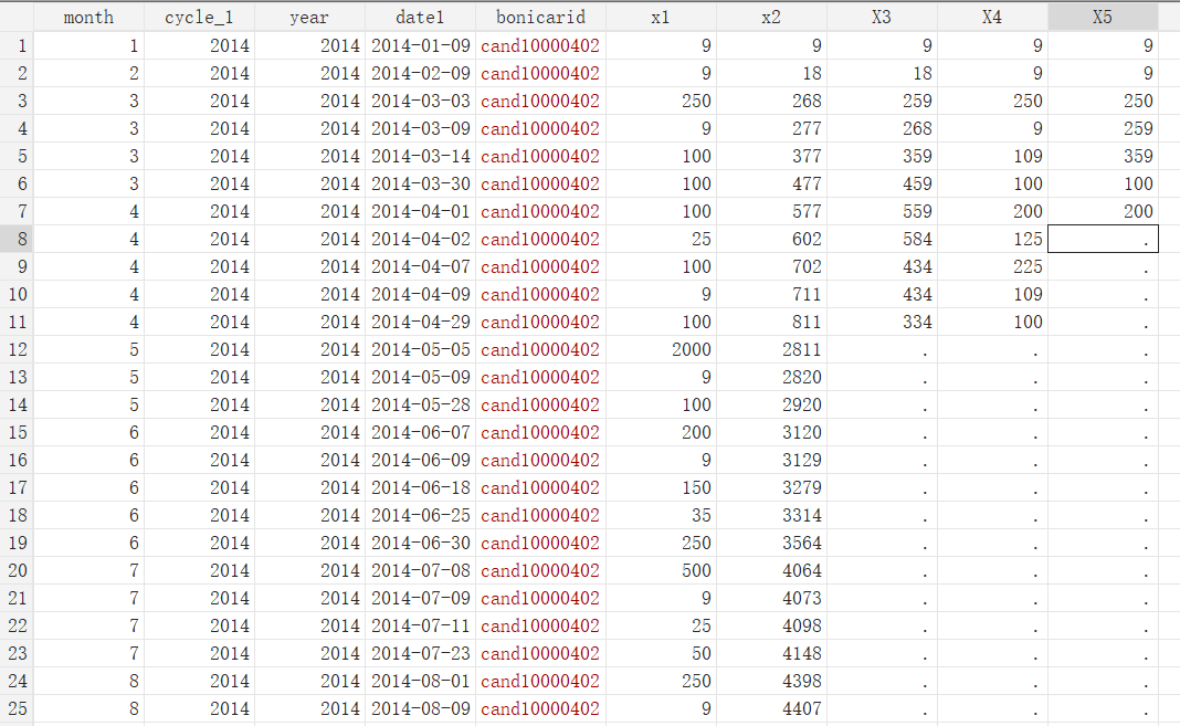 egen X5 = max(rolling_sum x1, window(14d) seed(date_num) var(x1)), by(bonicarid cycle_1)