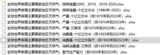 全球世界各国地区天然气探明储量产量消费量消耗量氢气生产能力1965-2023.zip