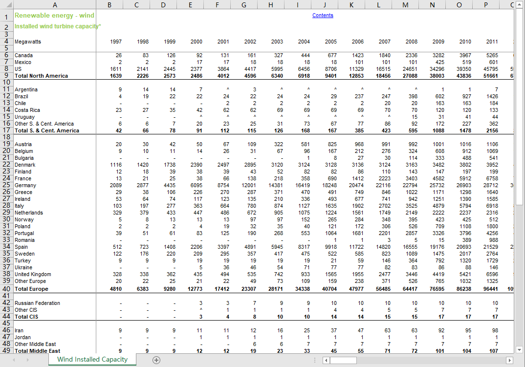 - 全球世界各国主要国家地区可再生能源-风能(装机容量)1997-2023.xlsx
