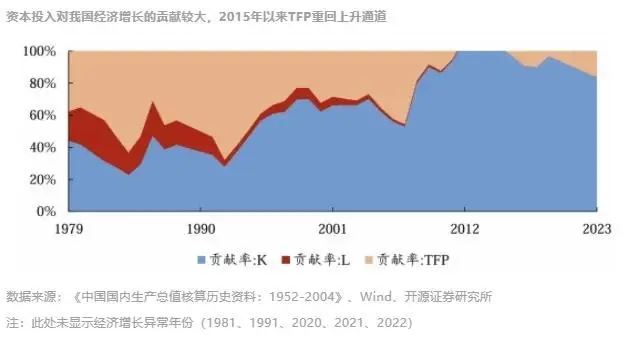 从全要素生产率来看,1978—2007年,全要素生产率对GDP增长的贡献非常大,但是2008年基建投资大量增加后,全要素生产率的贡献明显下降。