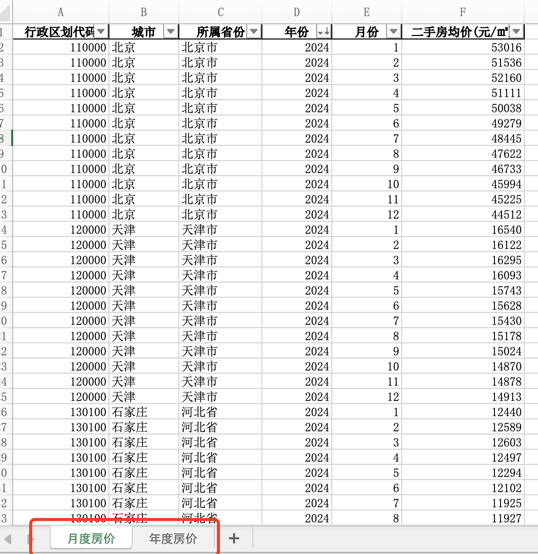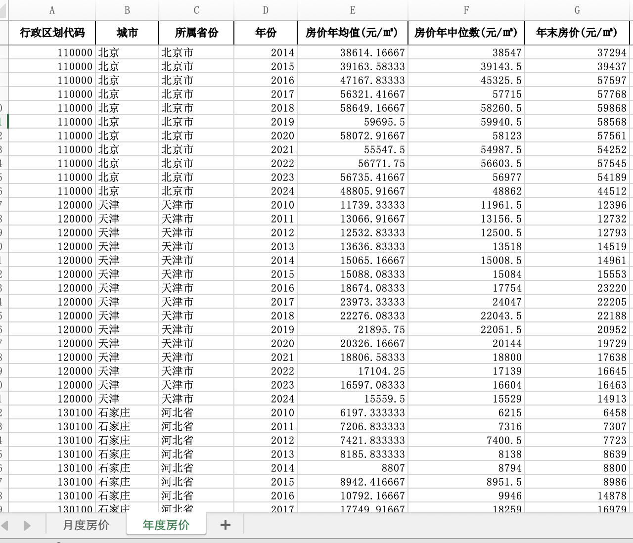 • 数据内容:月度、年度房价数据,涵盖均值、中位数及年末价格