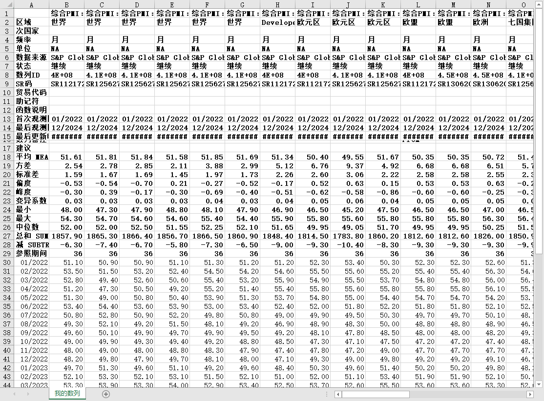 全球世界各国地区标准普尔全球采购经理人指数PMI2022-2024整体经济综合指数制造业服务业建筑业