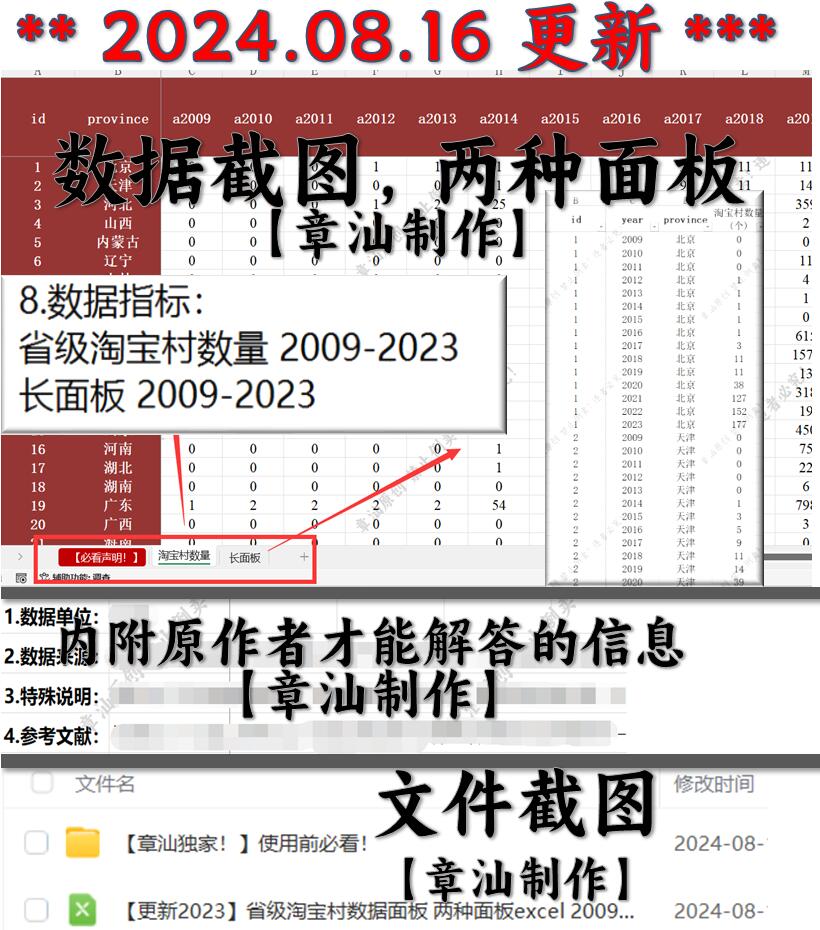 【更新2023】省级淘宝村数据面板 两种面板excel 2009-2023.zip
