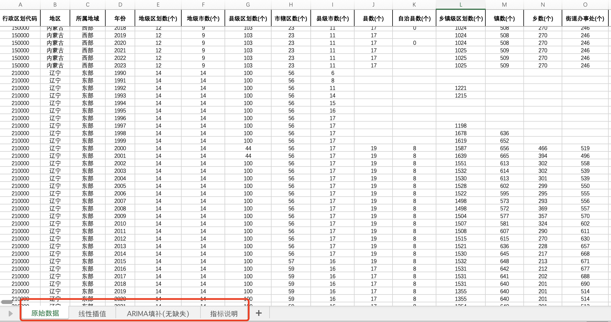 数据整理:Excel面板数据含原始数据(由于多年度指标不同存在缺失值)、线性插值、回归填补(无缺失)三个版本,提供您参考使用。其中,回归填补无缺失值,以保证面板数据的平衡性。