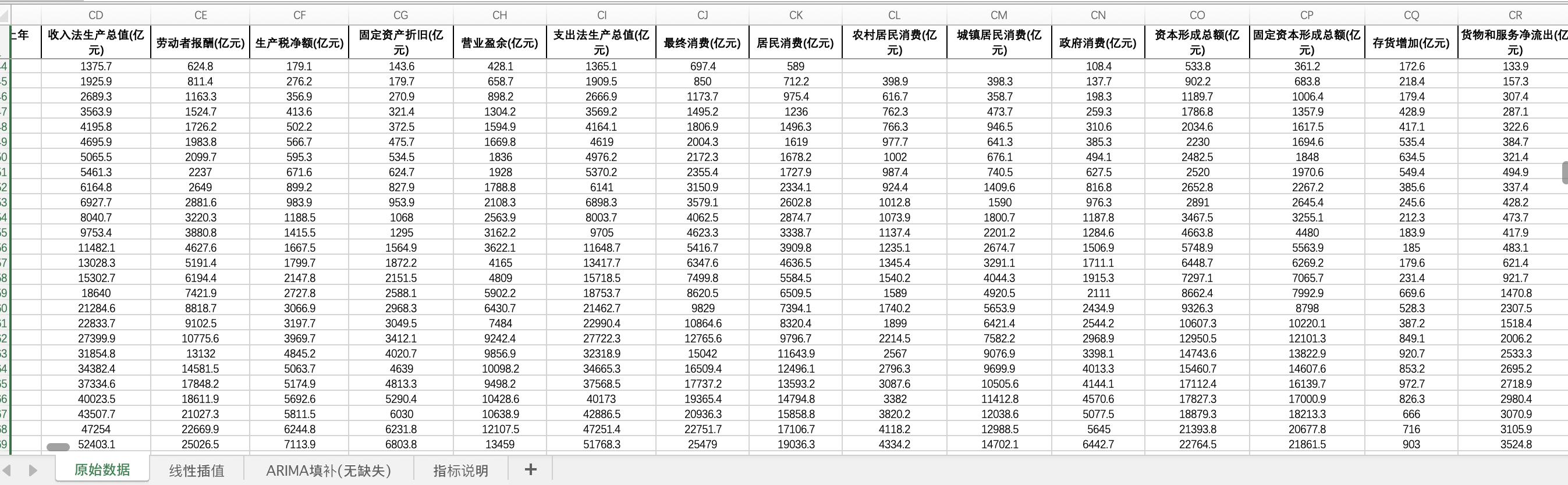 2. 线性插值:对缺失数据采用线性趋势填补,形成插值版数据集。