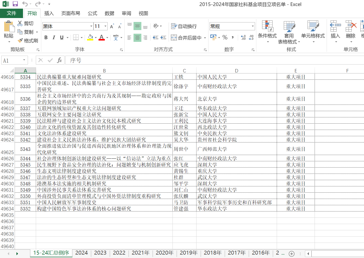 2015-2024年国家社科基金项目立项名单excel,有分年的有汇总的,便于搜索