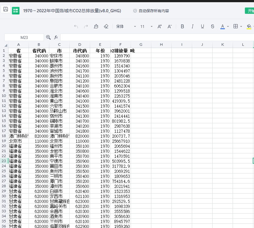 一、中国地级市碳排放数据的介绍本分享数据涵盖中国各地在不同时间段的化石二氧化碳(CO2)排放估计值,具体信息如下: