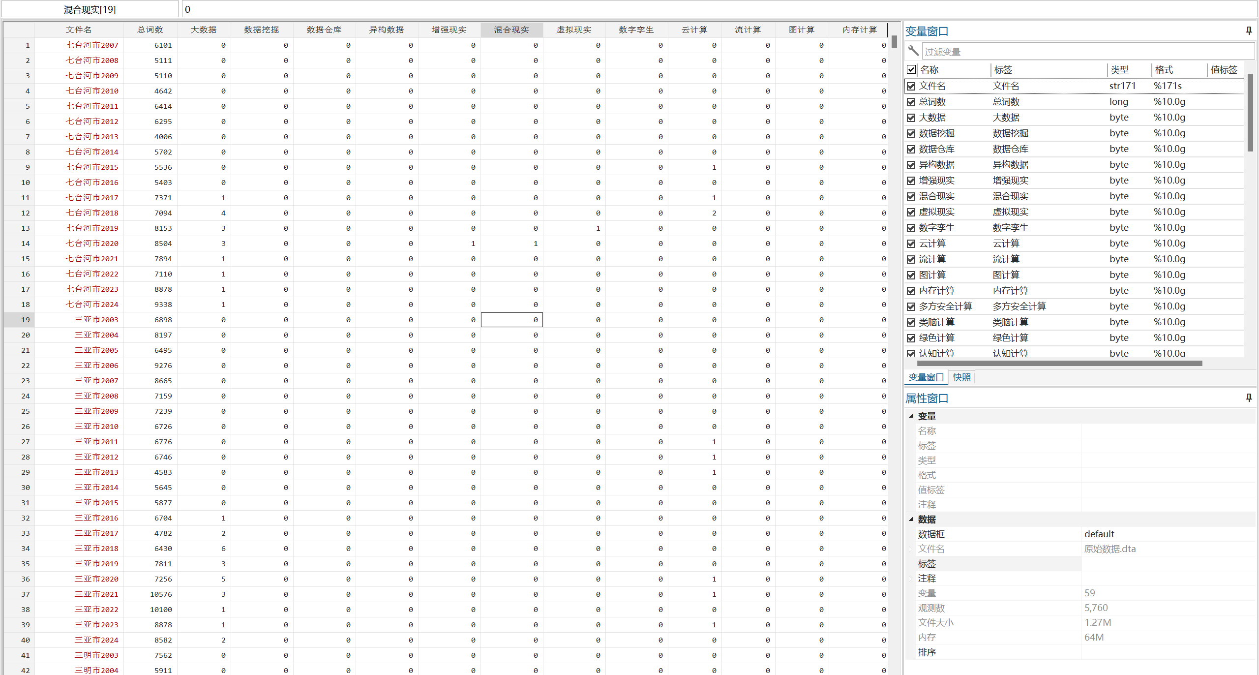 处理说明:原始数据为使用Python对地方ZF工作报告进行文本分析后获得(jieba分词,停用词表使用哈工大停用词表),后续使用Stata进行整理,最终形成面板数据形式