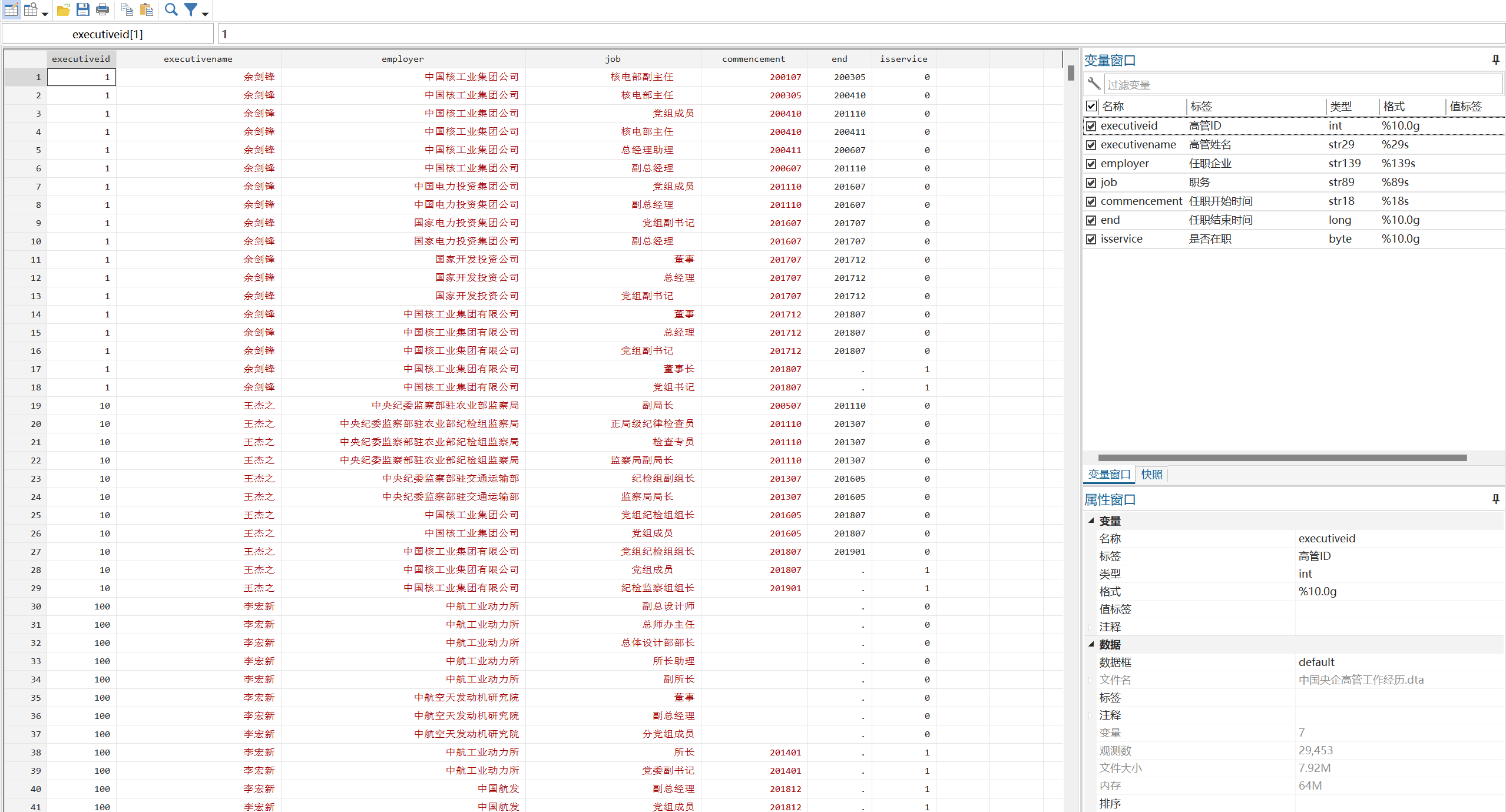 介绍:央企集团是国家的经济命脉,他们在国家发展中担负着重要责任,高管是公司决策制定和实施的核心群体,央企高管工作经历数据为研究央企高管行为提供了数据参考