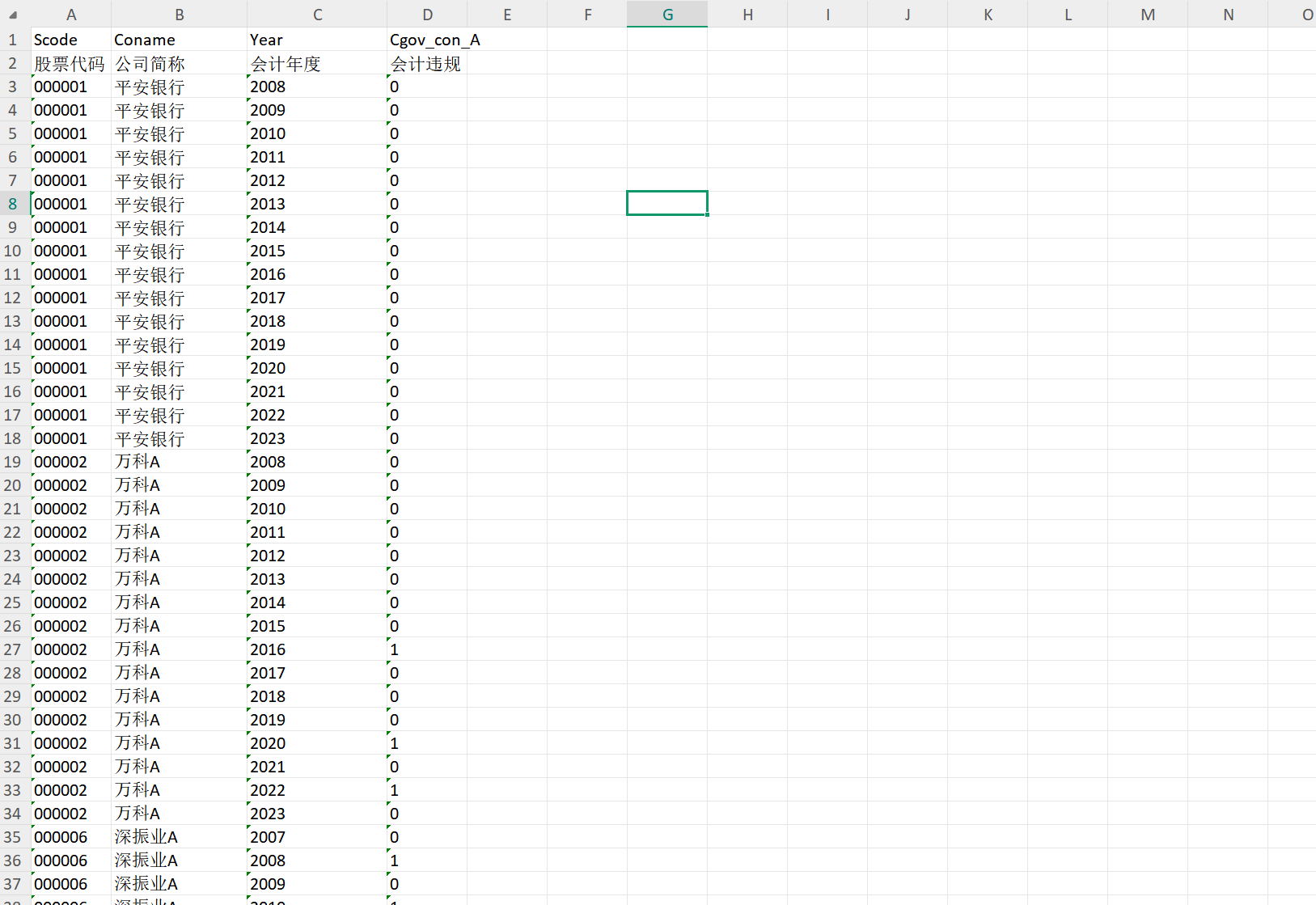 Cgov_con_A[会计违规]-如有会计违规情况,有则为1,没有则为0