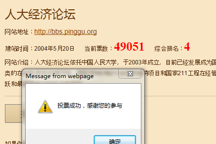 刚投票时发现,我们论坛的票数接近50000票了,可是怎么一天之内变成了第四名?