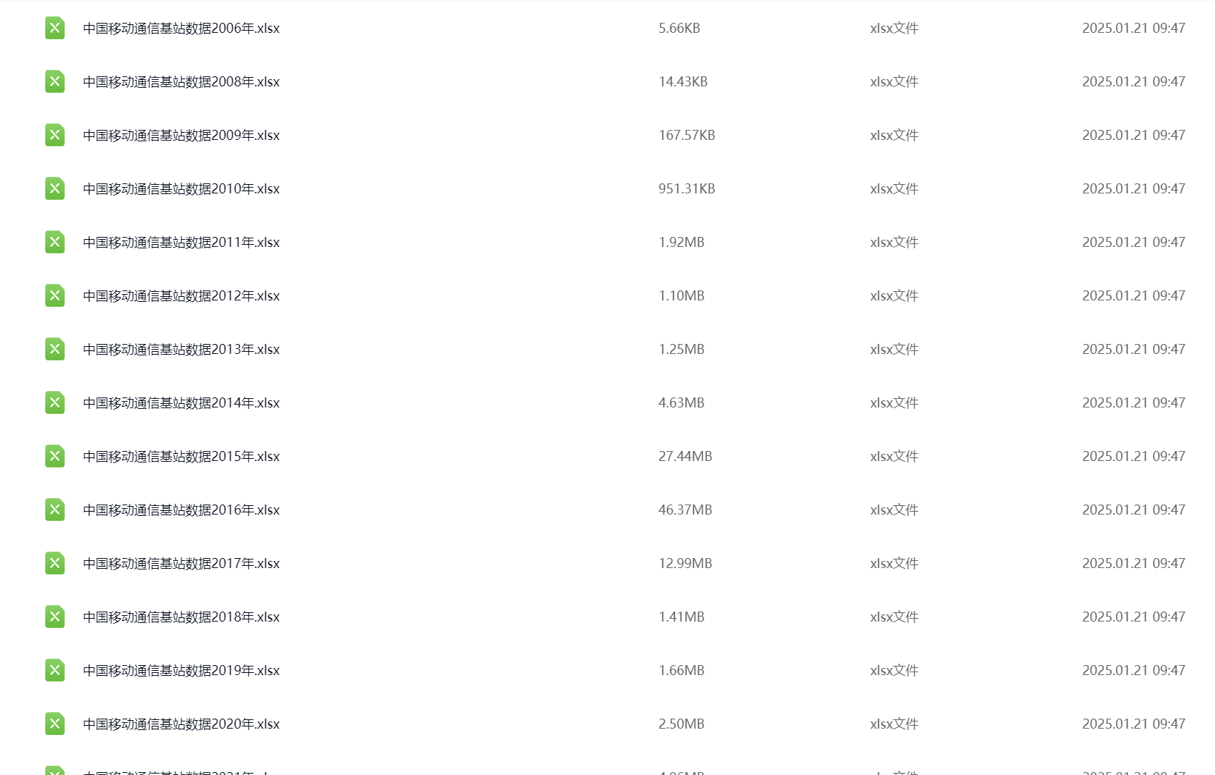 参考《数量经济技术经济研究》中钞小静(2024)、陈强(2024)等人的做法,OpenCelliD(世界上最大的开放式手机基站数据库)中爬取全球5000万余条基站信息筛选得到中国的基站信息,获取中国2G、3G、4G、5G基站的原始数据。覆盖年份为2006-2024年,总计183万余条,是具有价值的研究资料