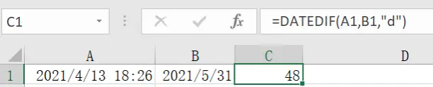=DATEDIF(起始日期,结束日期,所需信息的返回时间单位代码)