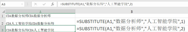 =SUBSTITUTE(需要替换的文本,旧文本,新文本,第N个位置旧文本)