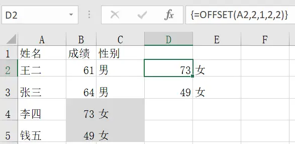 =OFFSET(参照单元格,行偏移量,列偏移量,返回几行,返回几列)