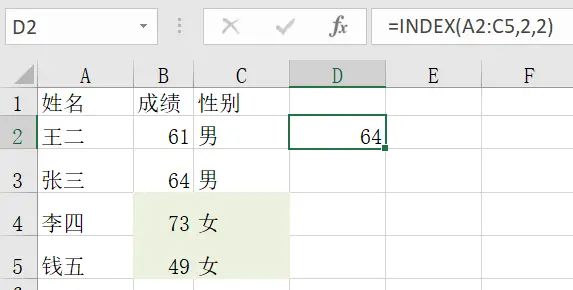 =INDEX(引用的区域,引用的行数,引用的列数)