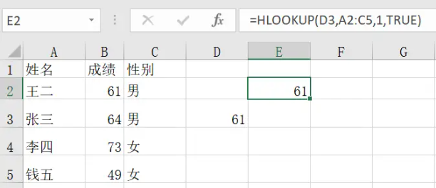 =HLOOKUP(查找目标,查找范围,返回值的行数,精确OR模糊查找)