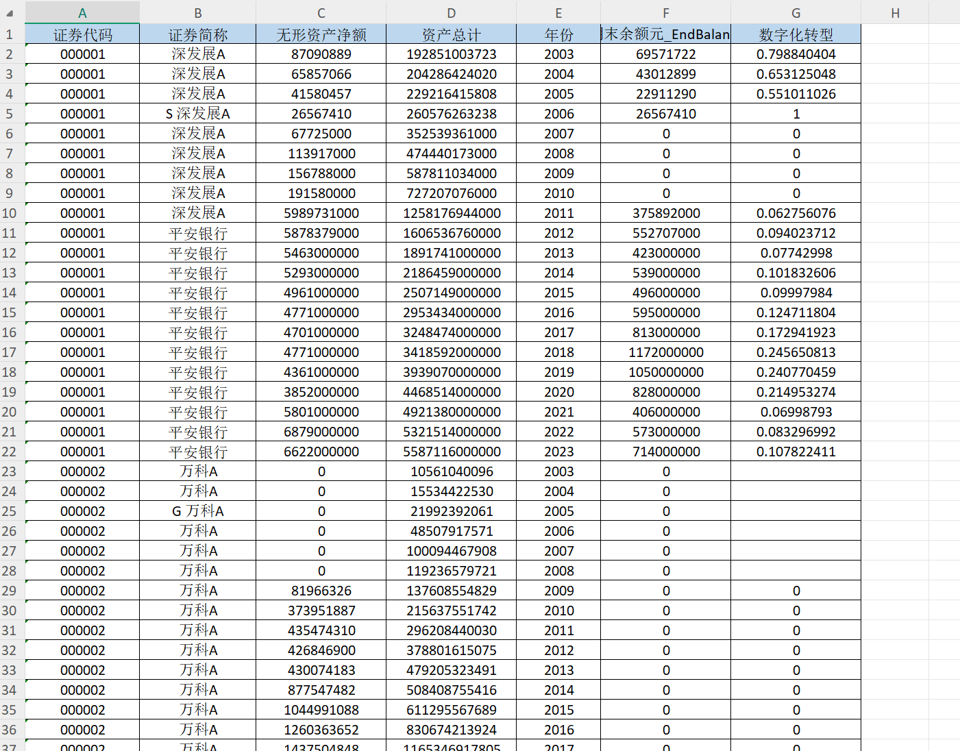 证券代码、证券简称、统计截止日期、报表类型、无形资产净额、资产总计、年份、期末余额(元)、数字化转型。