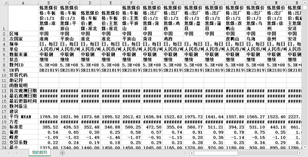 中联钢炼焦煤价格日度数据2019-20250104低硫主炼焦煤肥煤瘦煤邯郸淮北七台河等