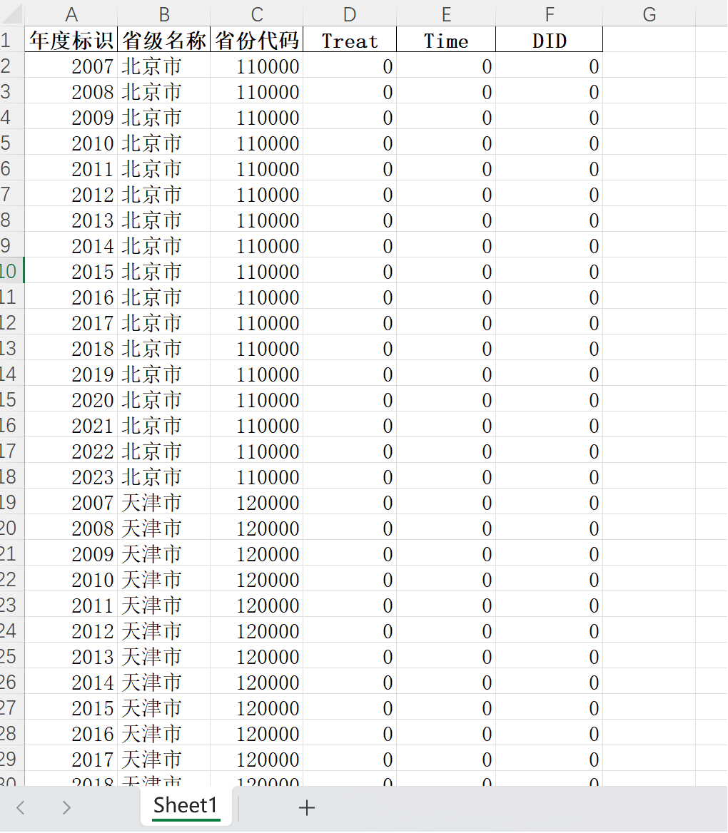 数据名称:各省份农业生产社会化现代化政策试点数据农业社会化服务试点政策DID07-23年数据